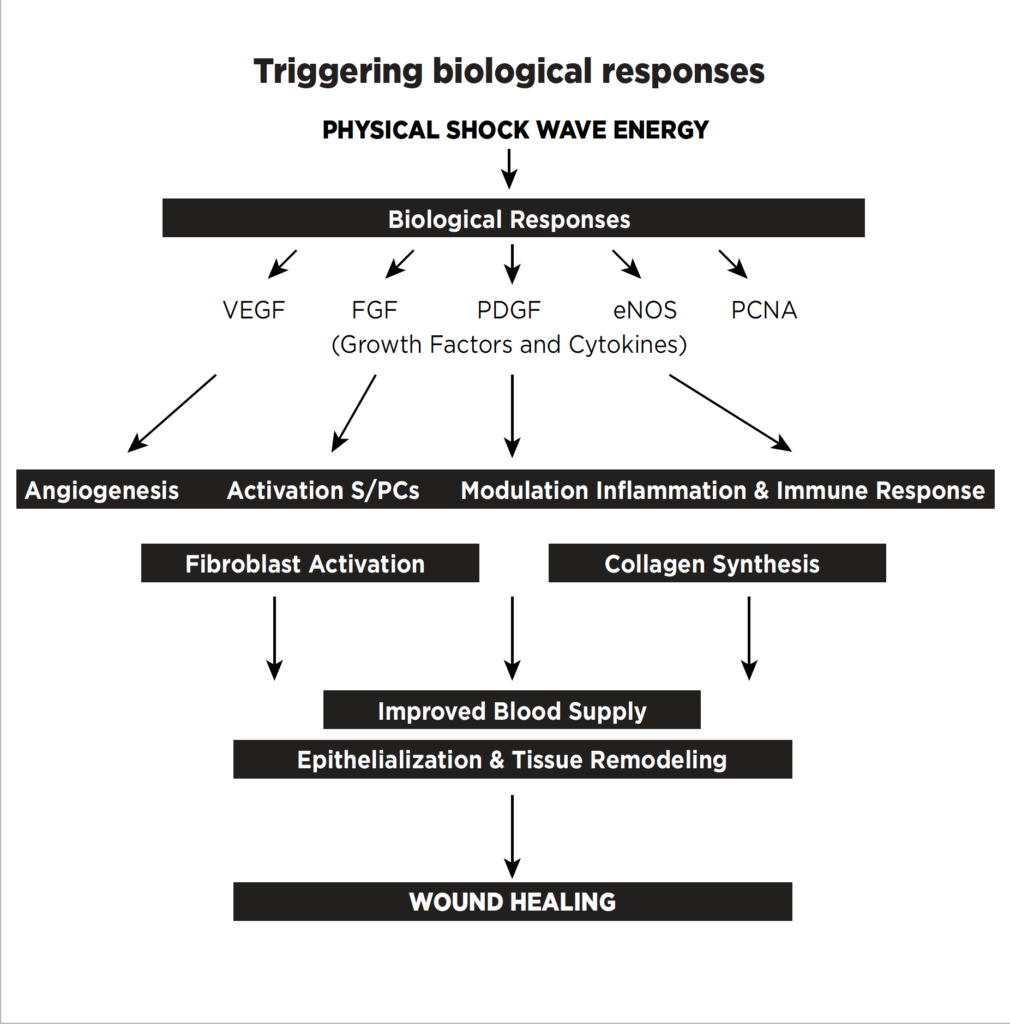 - Remodeling and neovascularization: Shock wave treatment can accelerate granulation and re-epithelialization and reduce scar formation. It also increases overall blood circulation and stimulates cutaneous and muscular microcirculation.